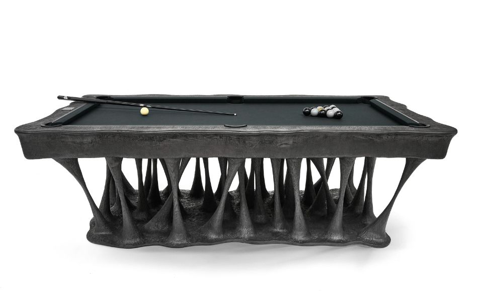 Parmi ces collaborations, le billard “Black Bi”, réalisé avec l’artiste Frédéric D. Driani, incarne pleinement cette approche. Pensé comme une œuvre d’art fonctionnelle, ce billard en édition limitée explore la profondeur du noir et la puissance de la forme.